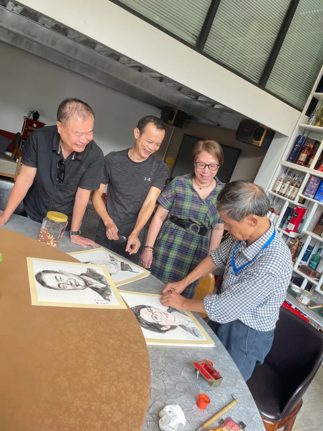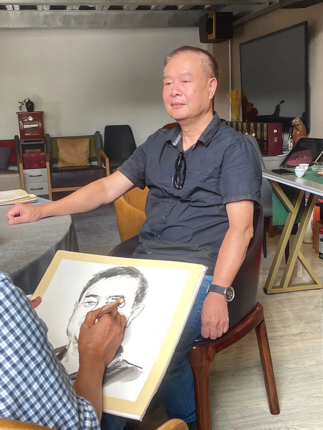 一:是取像神速,他所作写真人物,能快捷捕捉到对象的主要特征,抓住瞬间人物的表情和灵感,下手快如鹰击猎物,用笔流畅、一气呵成。